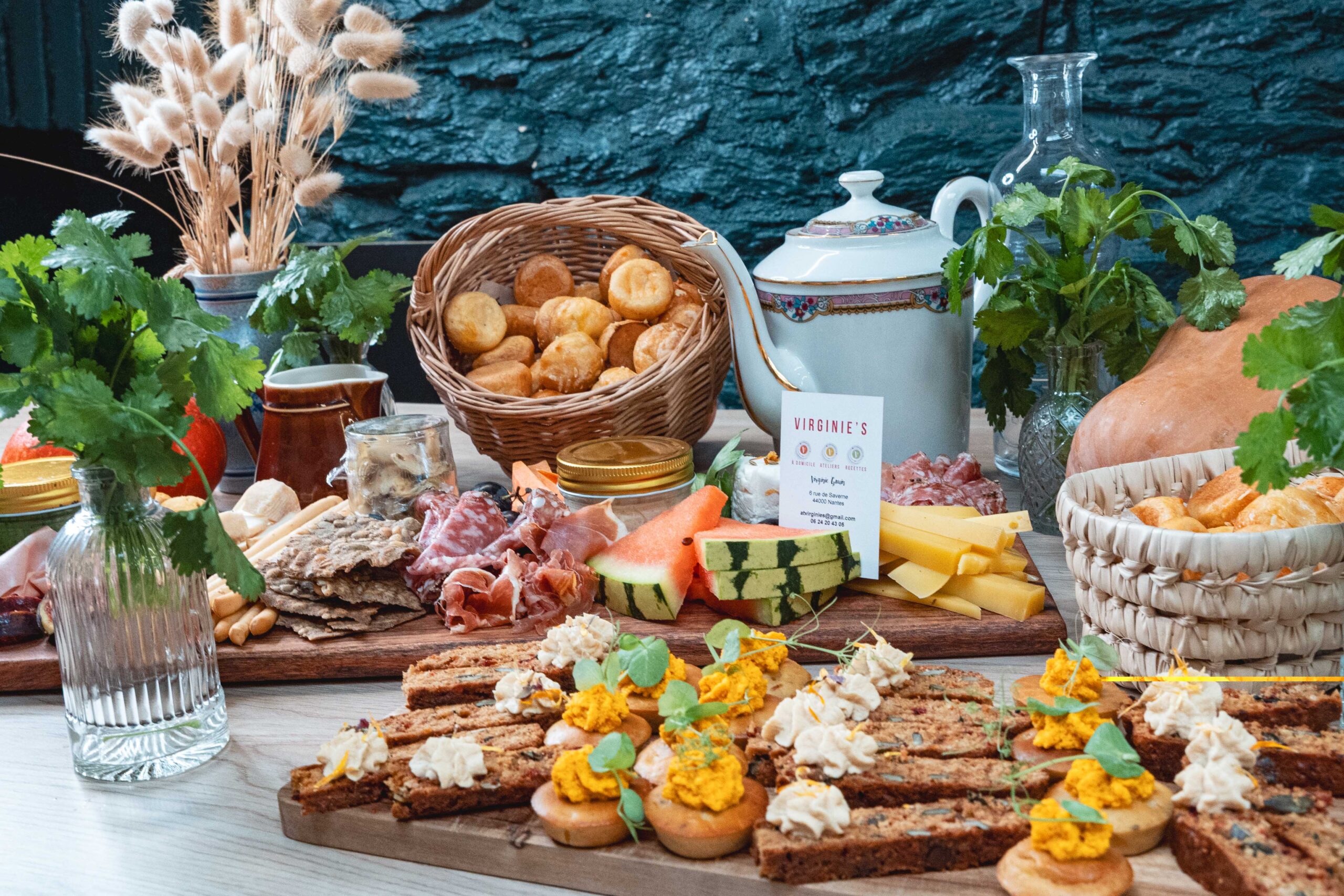Nous intervenons sur une grande variété d’événements professionnels dans le respect de votre identité et de vos objectifs : cocktails, petits-déjeuners, pauses café, buffets, soirées, repas privés, ateliers culinaires à Nantes et ailleurs…